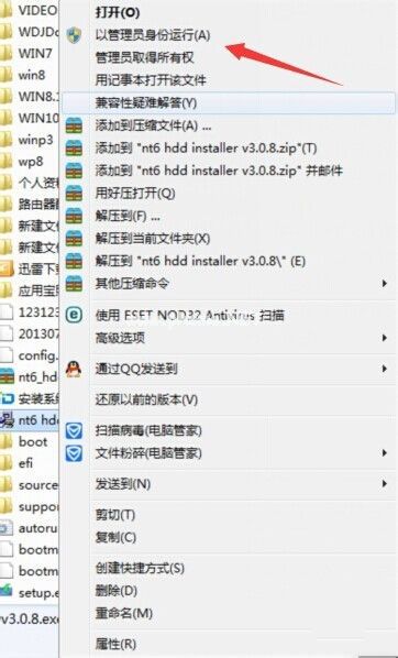 1.我们点击之前将早已准备好的主目录下文件nt6 hdd installer v3.0.8,然后以管理员身份运行