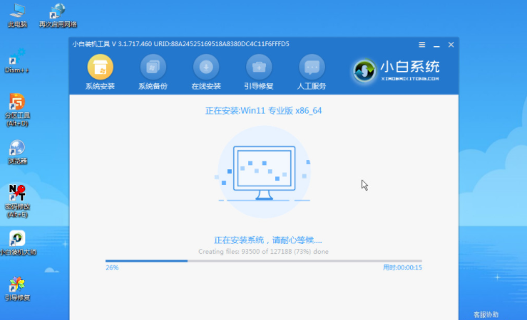 7、pe环境中,下载火(xiazaihuo.com)软件将自动执行windows11的安装。耐心等待完成即可。