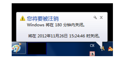 2.关机消息出现在桌面的右下角,它将在几分钟后关闭。