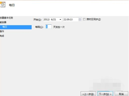 4、接下来会出现每日的对话框,我们可以输入想定时关机的时间以及每隔几天定时关机。注意开始时间就是现在设置的时间,不用更改。