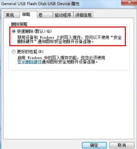 2,在U盘属性里面的的硬件选项卡找到属性,