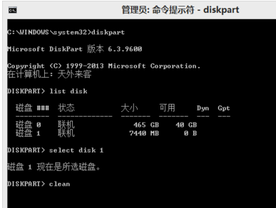 输入select disk X(X代表磁盘后面的数字0、1,可磁盘的大小来判断数字是多少,一般是按enter