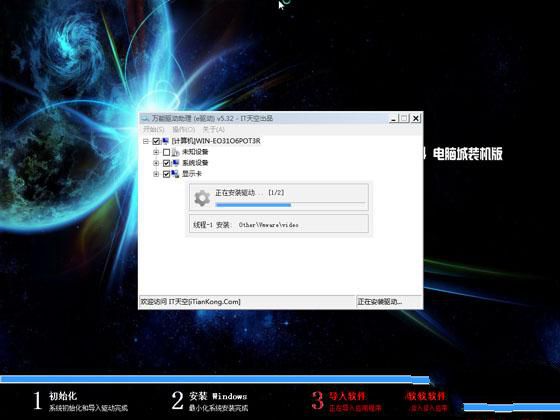 6、接着电脑会重启,拔出U盘,安装工具自动进行win7旗舰版32位系统的安装;