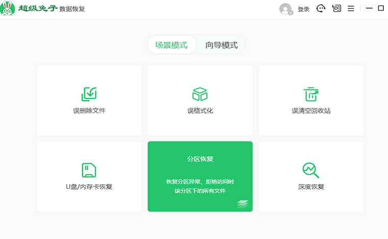 1、首先先打开软件,接着在场景模式下选择分区恢复。