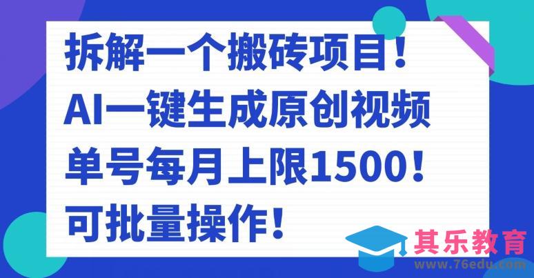 拆解一个搬砖项目!AI一键生成原创视频,单号每月上限1500!可批量操作!
