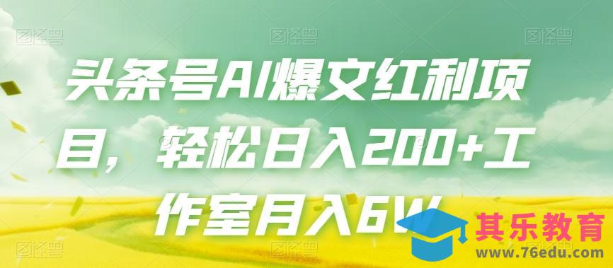 头条号AI爆文红利项目,轻松日入200 工作室月入6W