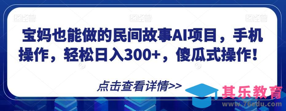 宝妈也能做的民间故事AI项目,手机操作,轻松日入300 ,傻瓜式操作!【揭秘】