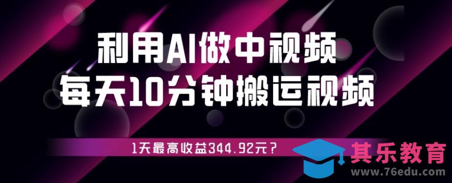 利用AI做中视频,每天10分钟搬运国外视频,1天最高收益344.92元?