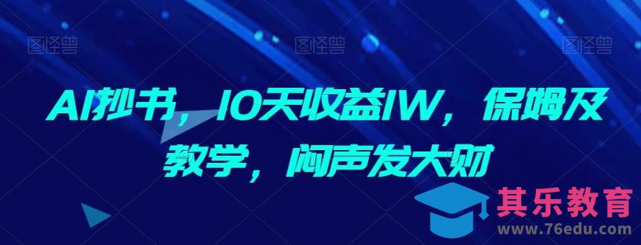 AI抄书,10天收益1W,保姆及教学,闷声发大财