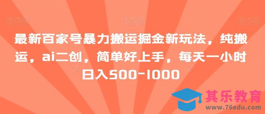 最新百家号暴力搬运掘金新玩法,纯搬运,ai二创,简单好上手,保姆级教学,每天一小时日入500-1000