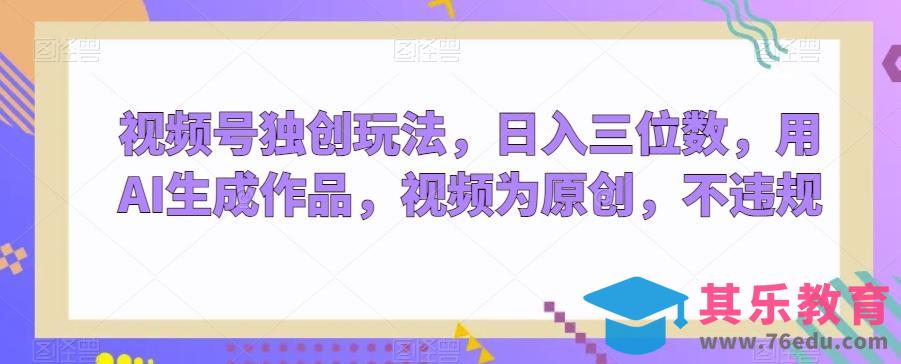 视频号独创玩法,日入三位数,用AI生成作品,视频为原创,不违规