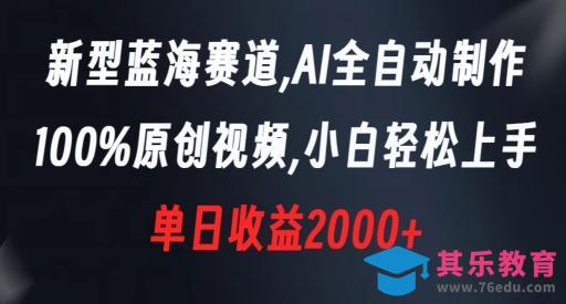 新型蓝海赛道,AI全自动制作,100%原创视频,小白轻松上手,单日收益2000 【揭秘】