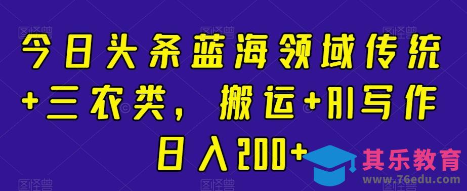 今日头条蓝海领域传统 三农类,搬运 AI写作日入200