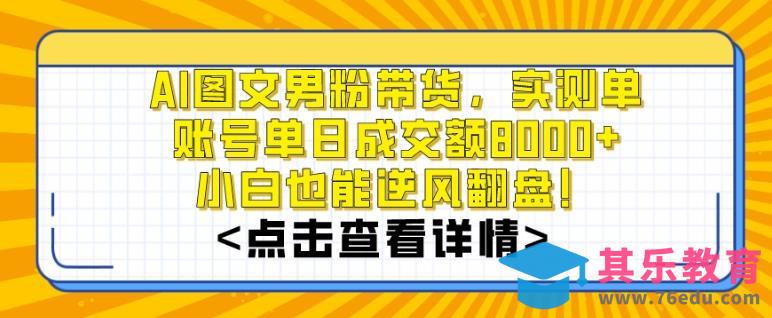 AI图文男粉带货,实测单账号单天成交额8000 ,最关键是操作简单,小白看了也能上手【揭秘】