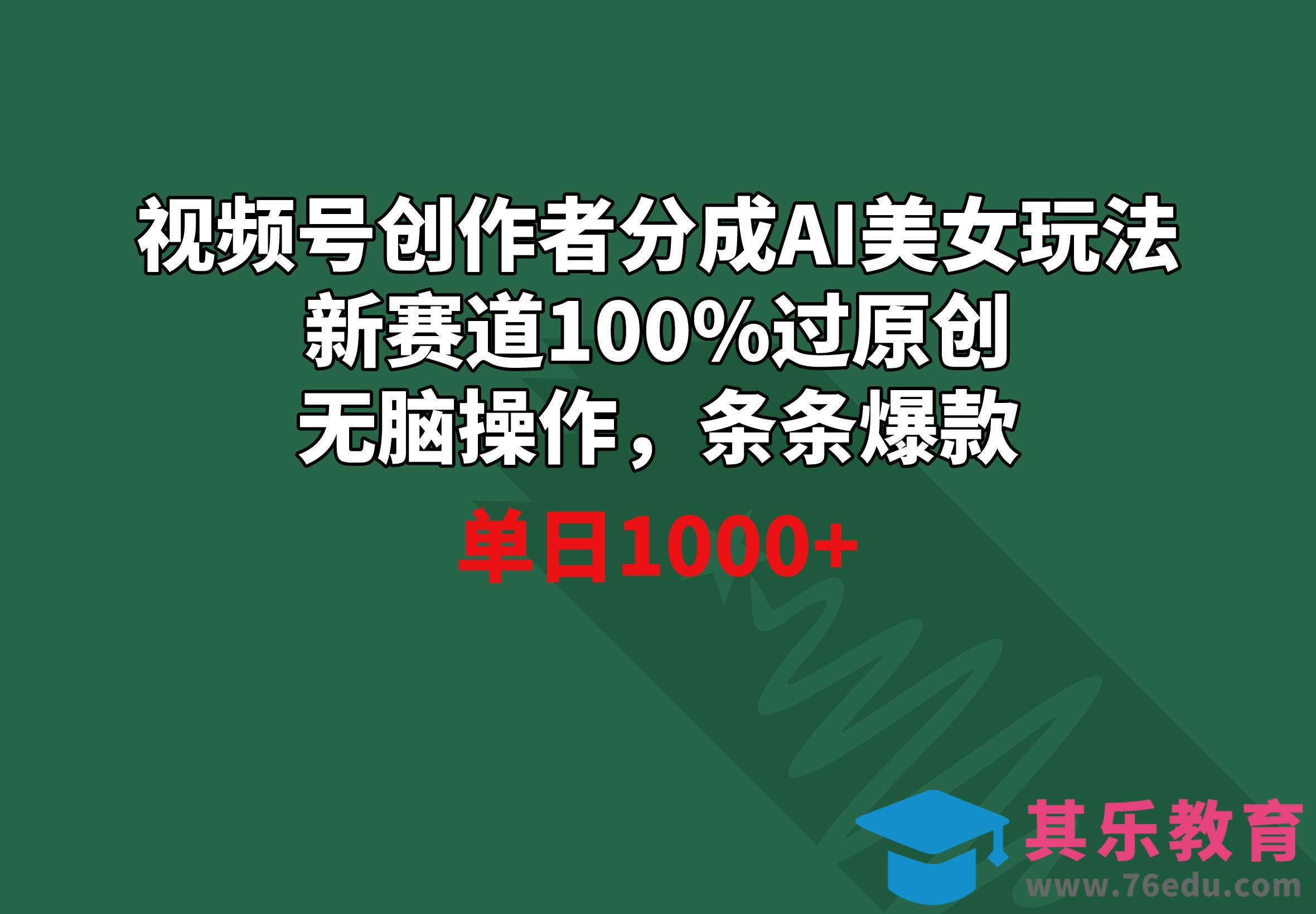 作者:视频教程网,原文地址:视频号创作者分成AI美女玩法 新赛道100%过原创无脑操作 条条爆款 单日1000发布于2025-08-20 16:01:17
