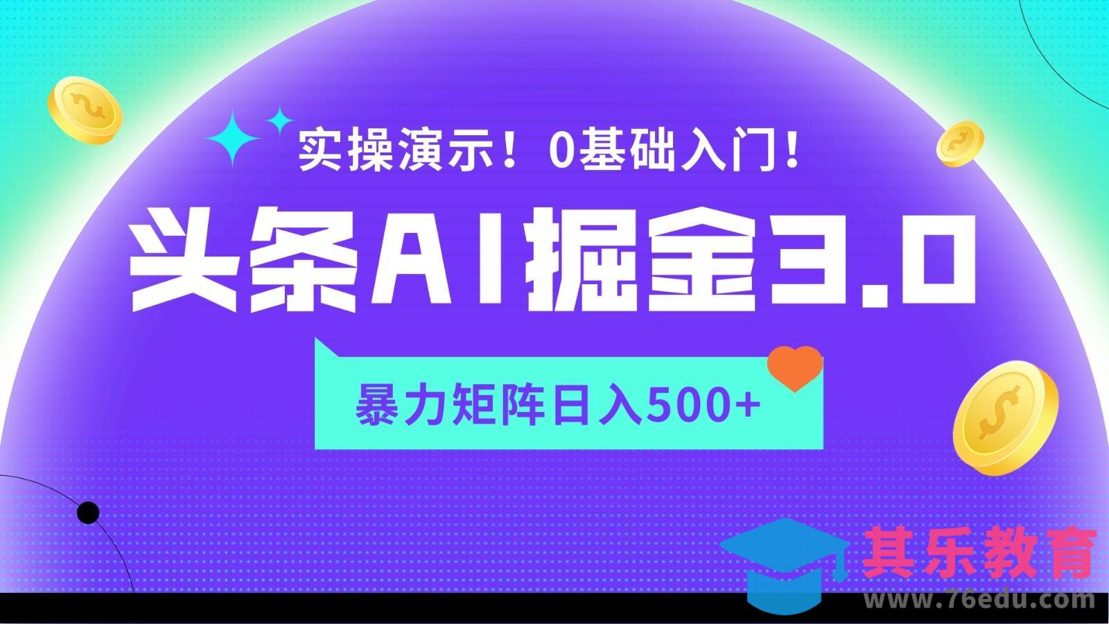 1.项目介绍:2024年蓝海项目头条AI掘金3.0玩法,基于今日头条平台利用AI进行对标爆款文章创作,参与头条平台的创作者收益计划,熟练应用AI辅助创作,可以实现5分钟量产一条文章,平台根据阅读量进行反馈收益,不同赛道收益情况不同,平台1万阅读量可实现30元收益。结合矩阵玩法,可实现多号多平台分发,真正实现轻松日收入500