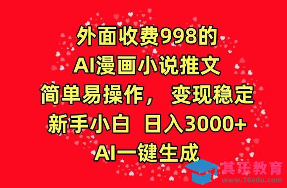 外面收费998的AI漫画小说推文,简单易操作,变现稳定,新手小白日入3000 ,AI一键生成【揭秘】