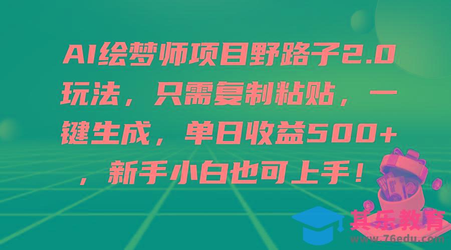 作者:视频教程网,原文地址:(9876期)AI绘梦师项目野路子2.0玩法,只需复制粘贴,一键生成,单日收益500 ,新…发布于2024-11-28 11:09:08