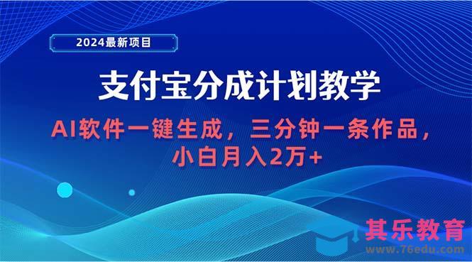 作者:视频教程网,原文地址:(9880期)2024最新项目,支付宝分成计划 AI软件一键生成,三分钟一条作品,小白月…发布于2024-11-03 02:25:33