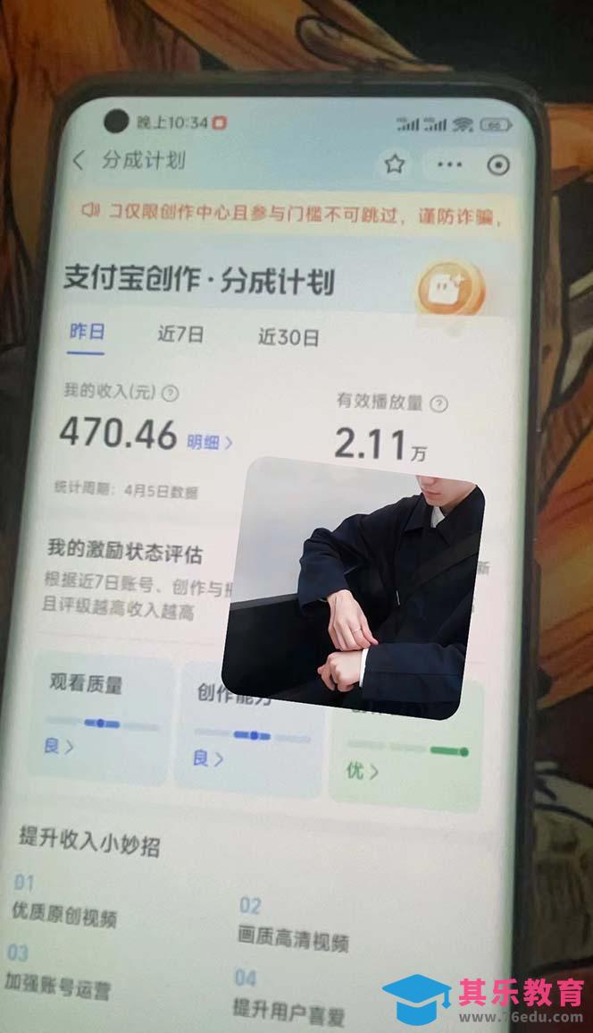 在支付宝上发布视频,根据观看量获得收益。现在支付宝分成大约是一万播放100块。可以看一下我这边团队的一个效果反馈。
