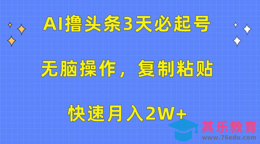 AI撸头条3天必起号,无脑操作超简单3分钟1条,复制粘贴快速月入2W 。