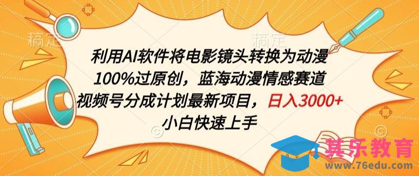 利用AI将电影镜头转换为动漫100%过原创,蓝海动漫情感赛道,视频号分成计划最新项目【揭秘】