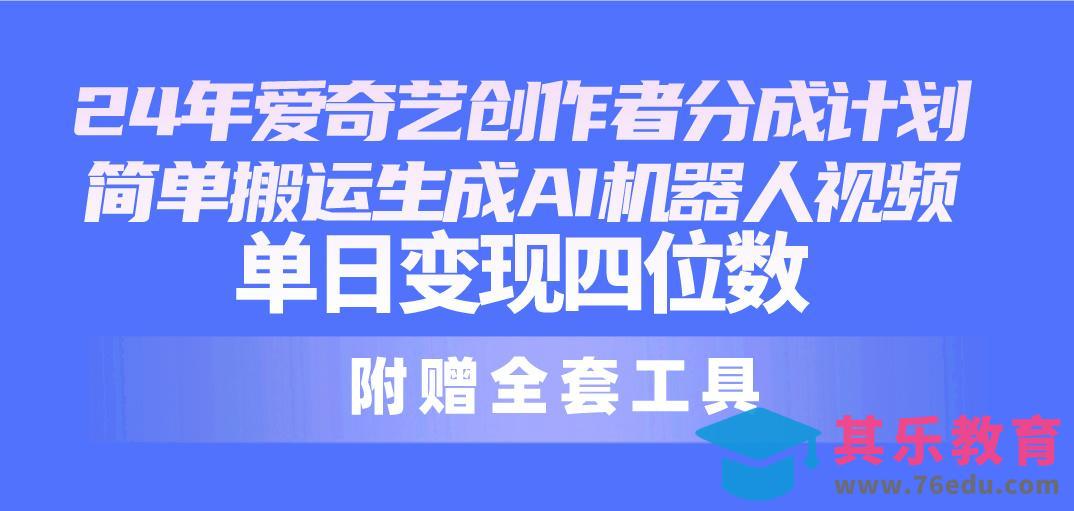 作者:视频教程网,原文地址:24最新爱奇艺创作者分成计划,简单搬运生成AI机器人视频,单日变现四位数发布于2024-08-25 04:23:10