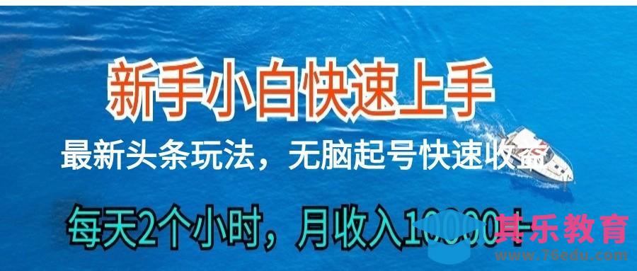 2024年头条最新玩法,无脑起号每天肉眼可见的收益,通过ai制作火爆作品。每天日入300+,新手小白也可以。