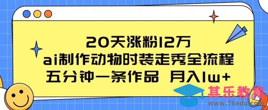 20天涨粉12万,ai制作动物时装走秀全流程,五分钟一条作品,流量大【揭秘】