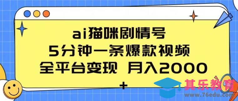 ai猫咪剧情号 5分钟一条爆款视频 全平台变现 月入2K 【揭秘】
