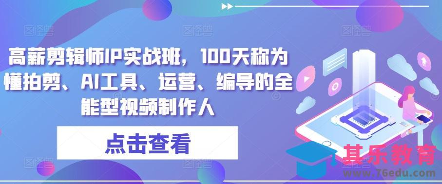 高薪剪辑师IP实战班,100天称为懂拍剪、AI工具、运营、编导的全能型视频制作人