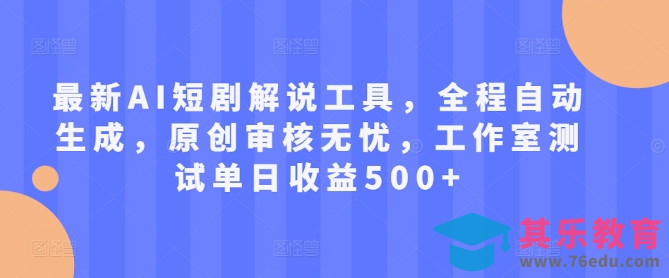 最新AI短剧解说工具,全程自动生成,原创审核无忧,工作室测试单日收益500 【揭秘】
