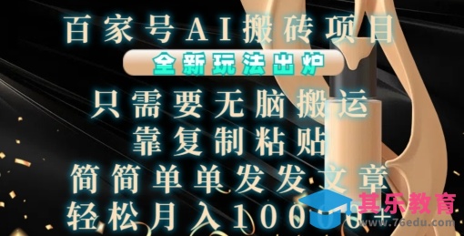 百家号AI搬砖项目,全新玩法出炉,只需要无脑搬运,靠复制粘贴,简单发文章,也能轻松月入1W【揭秘】