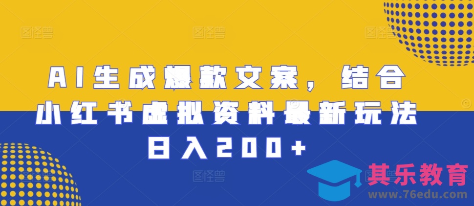 AI生成爆款文案,结合小红书虚拟资料最新玩法日入200 【揭秘】