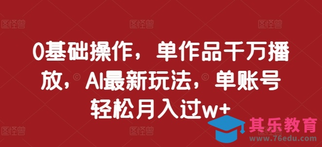 0基础操作,单作品千万播放,AI最新玩法,单账号轻松月入过w 【揭秘】