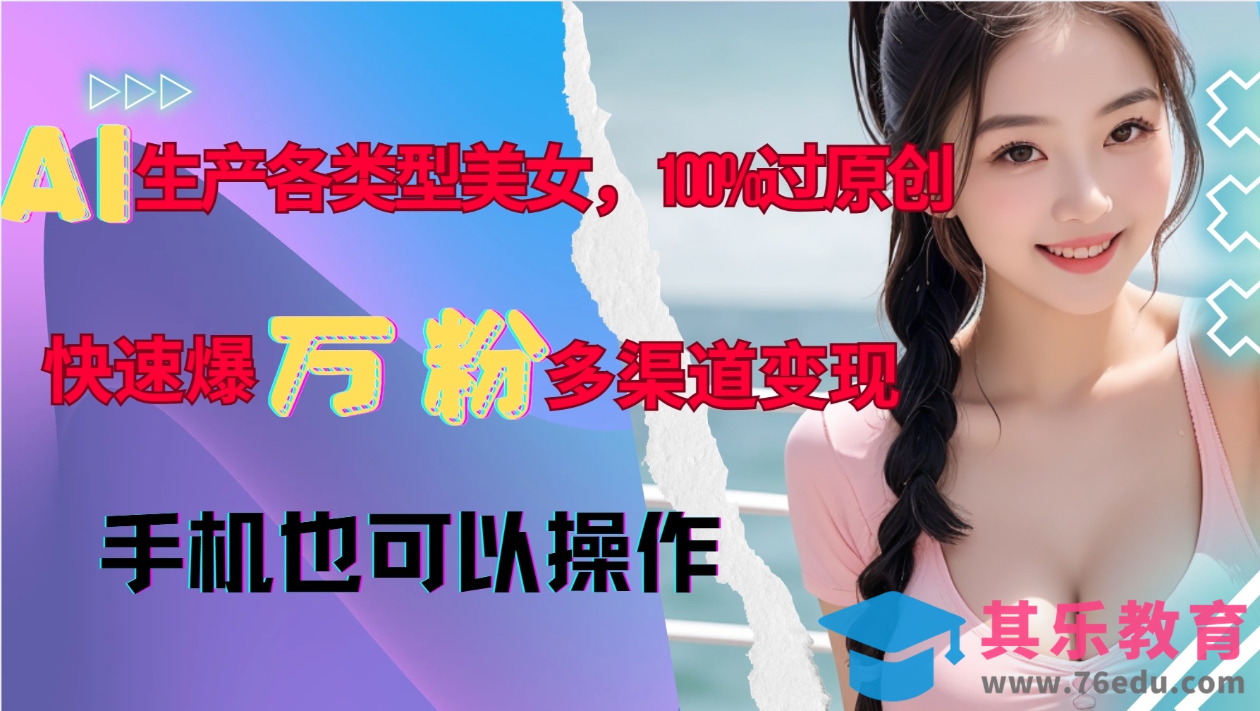 AI生产各类型美女,100%过原创,快速爆万粉,多渠道变现,新手可做