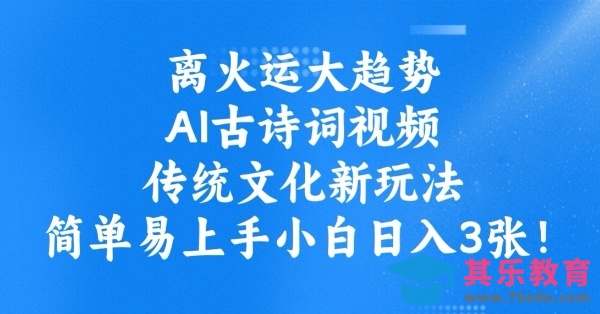 离火运大趋势,ai古诗词视频,传统文化新玩法,简单易上手小白日入3张