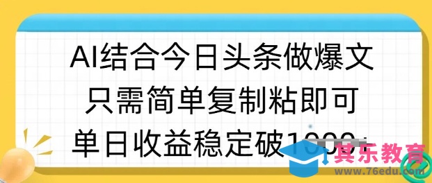 ai结合今日头条做半原创爆款视频,单日收益稳定多张,只需简单复制粘