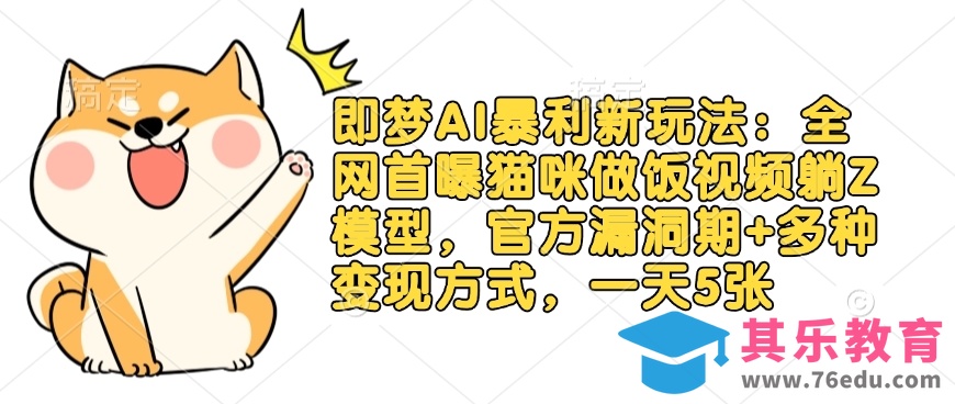 即梦AI暴利新玩法:全网首曝猫咪做饭视频躺Z模型!官方漏洞期 多种变现方式,小白轻松上手,一天5张