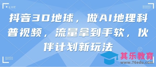 抖音3D地球,做AI地理科普视频,流量拿到手软,伙伴计划新玩法