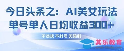 今日头条之AI美女玩法单号单人日均收益3张 ,不违规 不封号 无限制