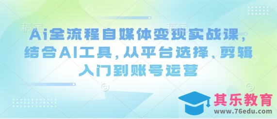 Ai全流程自媒体变现实战课,结合AI工具,从平台选择、剪辑入门到账号运营