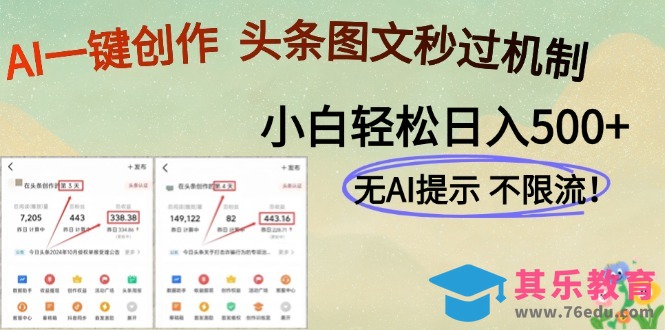 AI黑科技一键创作,头条图文轻松日入500 视频教程网 2024-01-19 15:09:08 默认 后台-系统设置-扩展变量-手机广告位-内容正文顶部 摘要: 咱们通过对头条机制的研发,研究了一款AI工具可以过头条的限流机制,通过AI一件写作,无需人工的修改润色直接发布,有阅读量就有收益,小白轻松无脑操作日入500 咱们通过对头条机制的研发,研究了一款AI工具可以过头条的限流机制,通过AI一件写作,无需人工的修改润色直接发布,有阅读量就有收益,小白轻松无脑操作日入500 后台-系统设置-扩展变量-手机广告位-内容正文底部 标签: 未经允许不得转载: 作者:视频教程网,原文地址:AI黑科技一键创作,头条图文轻松日入500发布于2024-01-19 15:09:08 转载或复制请以超链接形式并注明出处 电脑教程网 分享到: 赞() 打赏 觉得文章有用就打赏一下文章作者 支付宝扫一扫打赏 微信扫一扫打赏 上一篇 纯无人直播不封号,AI自动玩游戏,单日收益80 下一篇 纯无人直播不封号,AI自动玩游戏,单日收益80 上一篇 相关推荐 留言与评论(共有 0 条评论) 验证码: