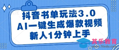 抖音书单玩法3.0,AI一键生成爆款视频,新人1分钟上手【揭秘】
