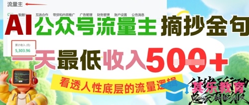 AI公众号流量主摘抄金句,看透人性底层的流量逻辑,一天最低收入5张