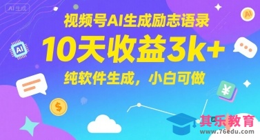 视频号AI生成励志语录,10天收益3k ,纯软件生成,小白可做