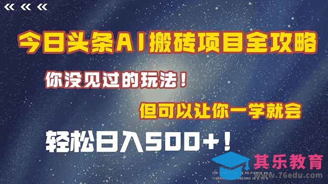 作者:视频教程网,原文地址:今日头条AI搬砖项目全攻略!一学就会,轻松日入500+!发布于2025-08-31 22:39:02