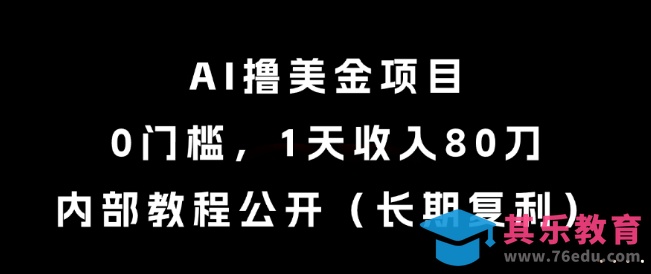 AI撸美金项目,0门槛,1天收入80刀,内部教程公开(长期复利)【揭秘】
