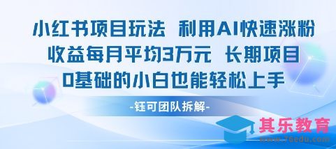 适合小白操作的小红书新项目,利用AI快速涨粉,收益每月平均1W