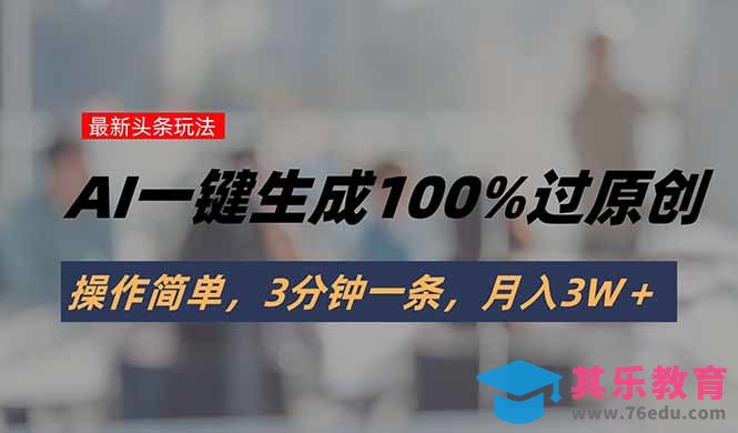 作者:视频教程网,原文地址:头条最新玩法,AI一键生成100%过原创,操作简单,3分钟一条,月入3W+发布于2025-05-25 03:29:35